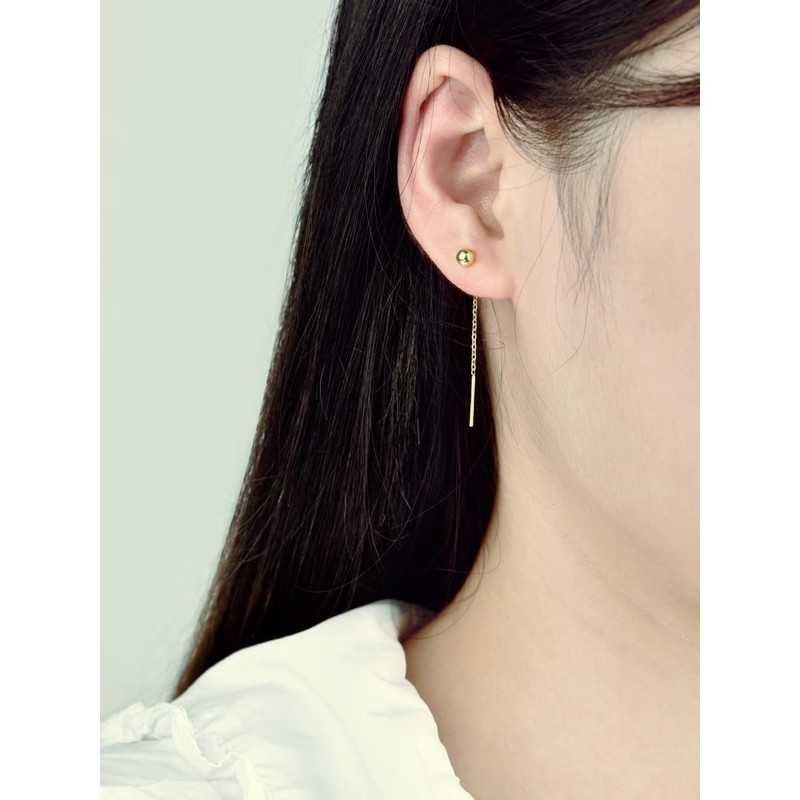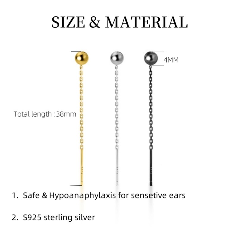 Cute Short Threader Earrings Silver Gold Black Chain Link Ball Dangle Drop Pull Through Earrings Minimalist, No Gemstone