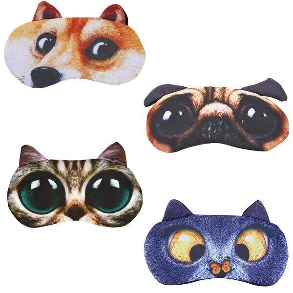 - Cute sleeping mask – set of 4 cute animal sleep blindfolds. Our elastic eye protection is small, lightweight and easy to carry. Add fun to your life with these cartoon patterned blindfolds.