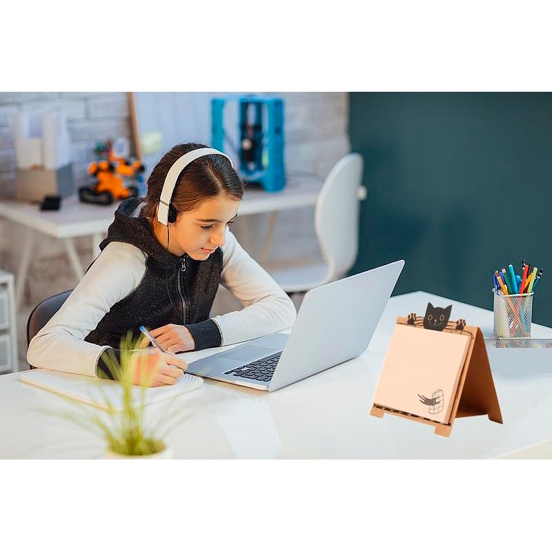- 2. Creative Desk Standing Base: Each pad is set up on a self-adhesive paperboard holder base, which can be unfolded as a triangular frame to stand on desk for conveniently peel-n-stick or just for displaying your notes or as a cute desktop decor.