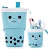 Cute Stuff for Teen Girls Cute Bags Standing Pencil Case Cute Telescopic Pen Holder Kawaii Stationery Pouch Makeup Cosmetics Bag for School Students Office Women (Blue)