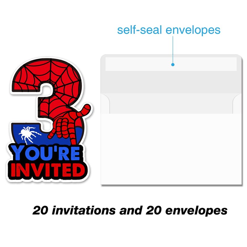 Cute Superhero 3rd Birthday Party Invitations Glitter Super Hero 3 Year Old Boy Birthday Shaped Invites Fill-in Invitations With Envelopes, Set of 20