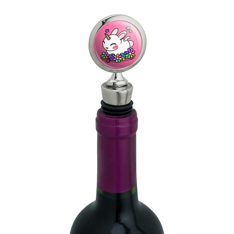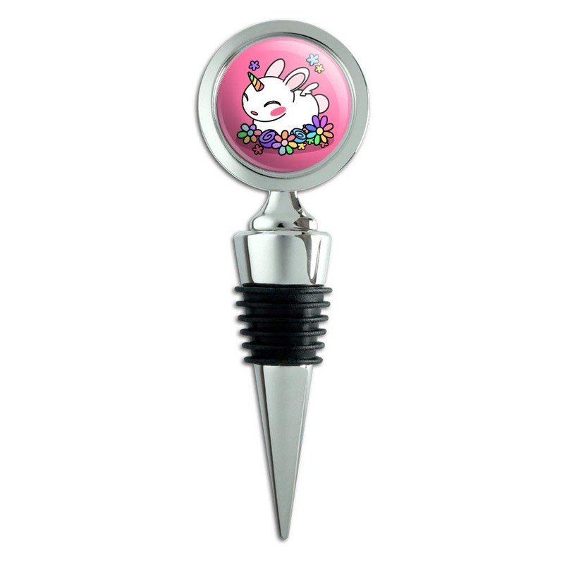 Cute Unicorn Bunny Rabbit with Rainbow Flowers Wine Bottle Stopper