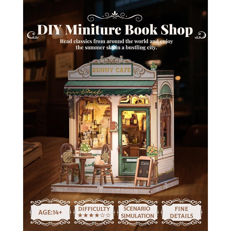 - EXQUISITE CRAFTSMANSHIP | Precision Meets Aesthetics: Each Book Nook Kit is made of eco-friendly wood: miniature kit with laser cutting technology for millimeter accurate fit. Easy to assemble thanks to illustrated instructions - ideal for miniature house building projects