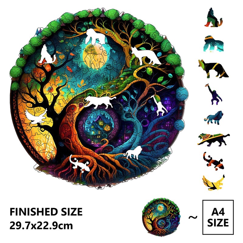 Cuteefun Wooden Puzzle for Adults, Unique Shaped Children's Animal Puzzle Wooden Cabin Tree for Birthday Gift Father's Day (A4 Size)