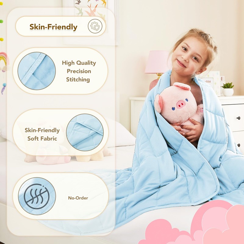 CuteKing Weighted Blanket - Weighted Blanket with Premium Glass Beads - Breathable Heavy Blanket for Comfort Sleep - Thick Blanket All Season (10lbs, 50"x60", Full, Light Blue)
