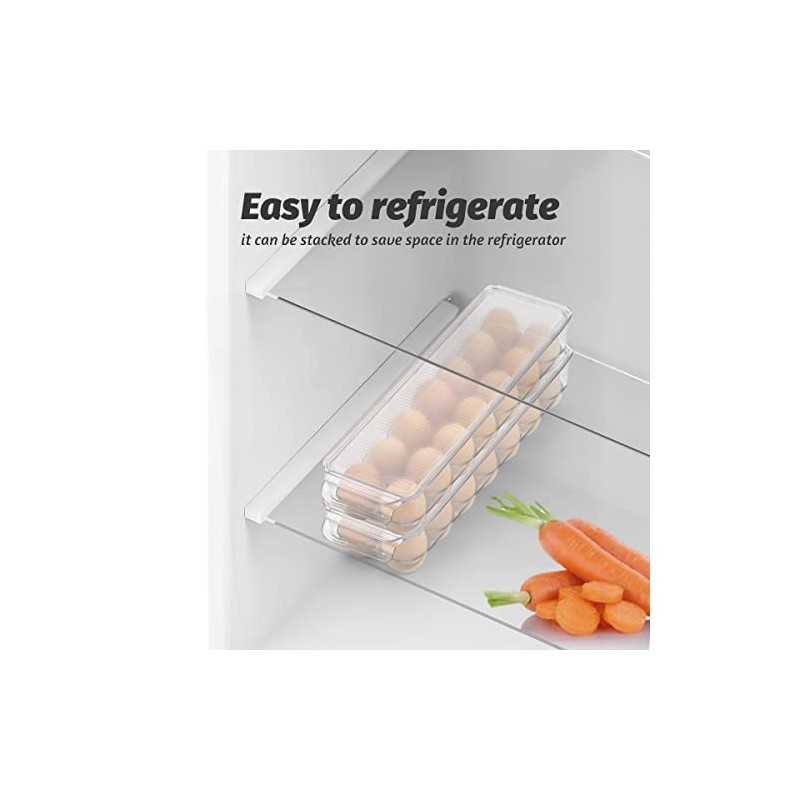 - [Stackable & Space Saving]fridge organizers and storage comes with clear plastic egg carton with 14 compartments for eggs, as well as a lid.So is easily stackable, allowing for optimal storage in a crowded refrigerator.