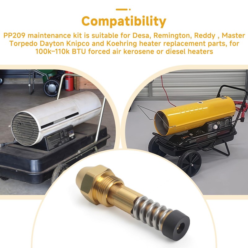 - Compatibility:PP209 maintenance kit is suitable for Desa, Remington, Reddy , Master Torpedo Dayton Knipco and Koehring heater replacement parts, for 100k–110k BTU forced air kerosene or diesel heaters