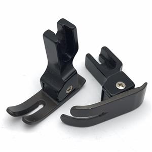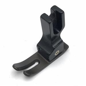 Black Teflon Coated Hinged Presser Foot With Extended Heel For Industrial Single Needle Sewing Machines.