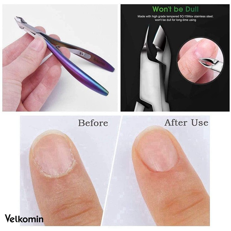 - Velkomin trimmer features surgical-quality, stainless steel tip. Its sharp blades cut even the tiniest cuticles with clean snip every time, without pulling or tugging