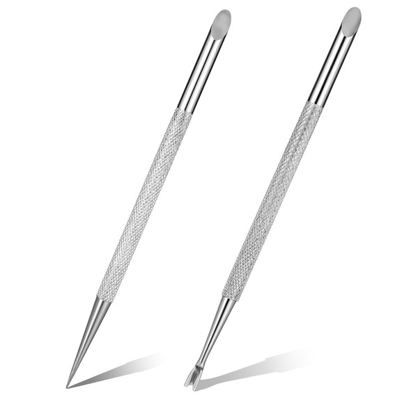 Cuticle Pusher, 2 Pcs Stainless Steel Cuticle Remover Tool Silver Sturdy Under Nail Cleaner Tool for Beginners Experienced Nail Art Enthusiasts