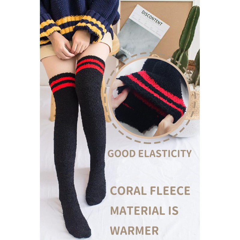 - 【Best Gift Choice】The striped coral fleece socks for women in daily wear , role play, cosplay, parties, photoshoots, and so on. Coral fleece thigh high socks can be a sweet gift for family members, friends, or anyone you love, a perfect christmas gift, and a birthday gift.
