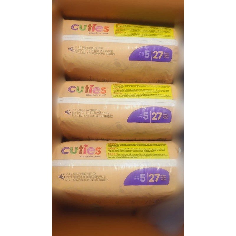 I have 12 packages of Cuties Complete Care TM size 5 with 27 diapers in one package.