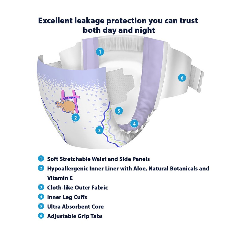 - SOFT & HYPOALLERGENIC: Made from cottony soft materials free of latex, fragrance, dyes & chlorine, these diapers feature a hypoallergenic inner liner enriched with aloe, natural botanicals & vitamin E.