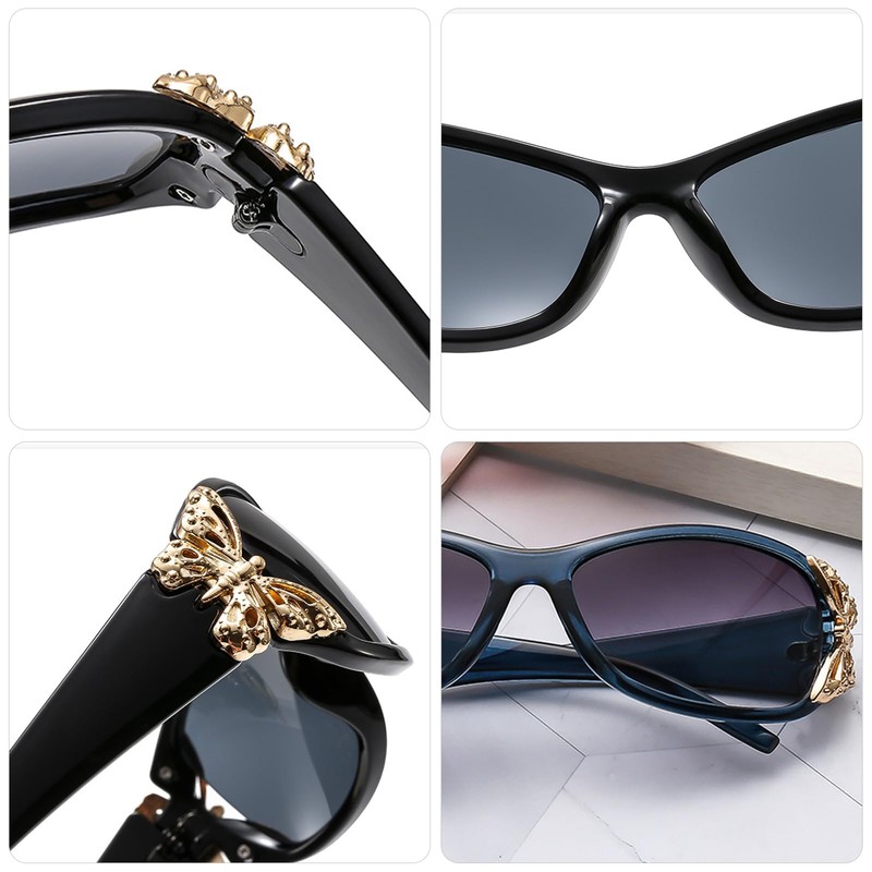 - STYLISH BUTTERFLY SUNGLASSES: This chic frame wraps around the face to provide full eye protection and side face protection. The sleek and sophisticated design adds a stylish touch to any occasion. The chic design of the butterfly sunglasses will not only add a unique element to your outfit, but also add a touch of fashionable glamour.