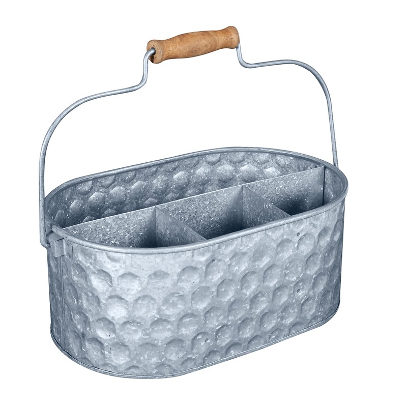 Cutlery Caddy,Flatware caddy,Galvanized Utensil caddy,Utensil Caddy,Tin ware décor,Utensils caddy,Picnic utensil holder caddy,Galvanized Storage bins,Galvanized bucket,Outdoor utensil -Natural