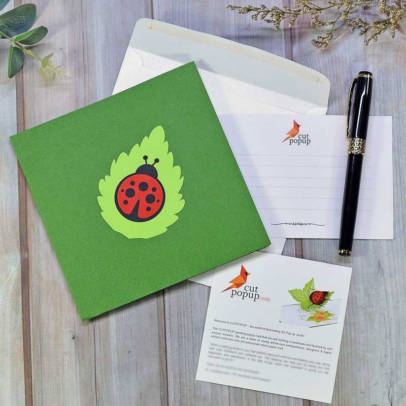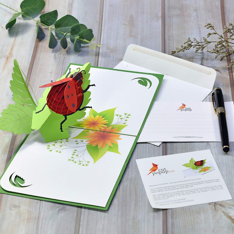 - For a green life - Inspired by nature, our design chooses green as the main theme. On the background is a bright red ladybug - beautiful and cute, makes this 3D pop up card stand out.