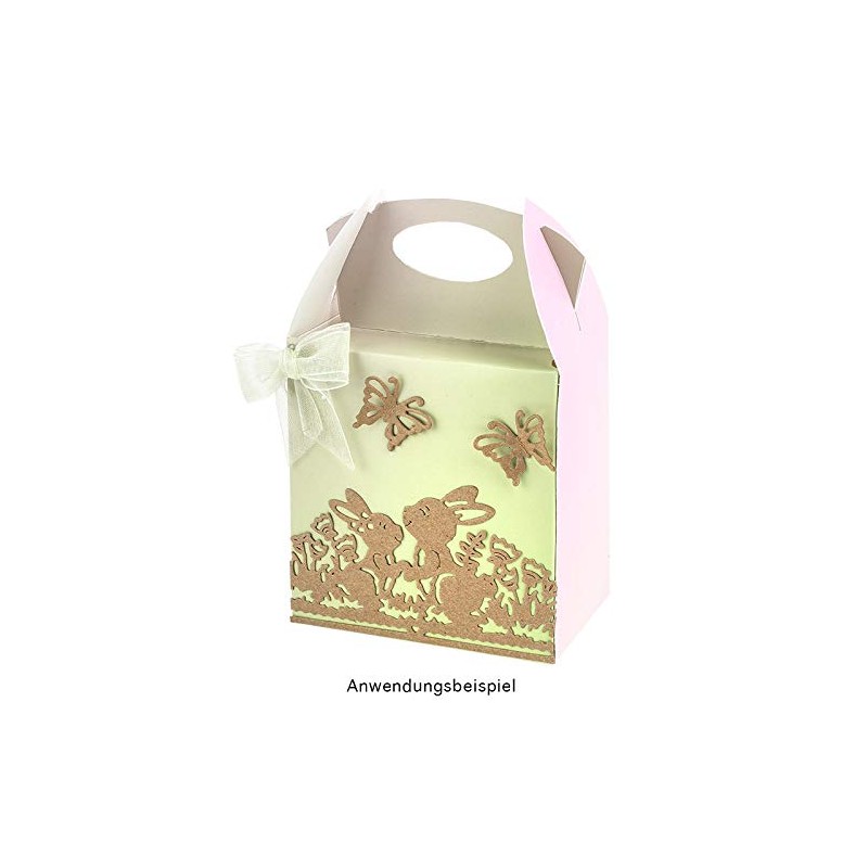 Place the die with the cutting side facing up under the paper to be punched and place everything between the plastic plates as indicated in the instructions of the machine. Now the stack is guided through the machine congruently as indicated, then remove the plastic plates and can remove your ready-punched paper. Easily and safely design individual greeting cards, place cards and much more.