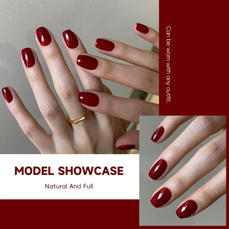 CUZIAM Cherry Red Press On Nails Short Square, 32Pcs 16 Sizes Valentines Soft Gel Dark Red Stick on Nails Coffin, Natural Reusable Burgundy Wine Red Fake Nails Acrylic Glue on False Nails for Women