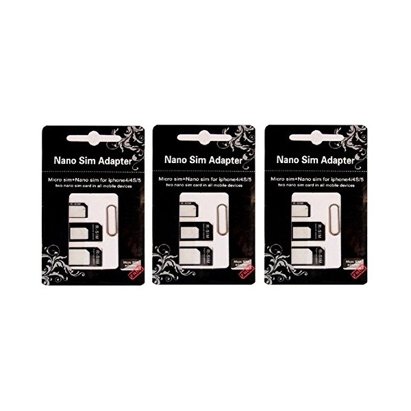 Cuziss Set of 3 Nano Sim Adapter and Micro Sim Adapter and Nano to Micro Adap...