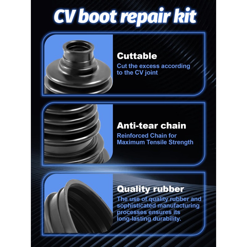 - As a CV boot kit suitable for most vehicle models such as cars, trucks, SUVs, ATVs, and quad bikes, it can flexibly fit various vehicles, ensuring compatibility with different makes and models.