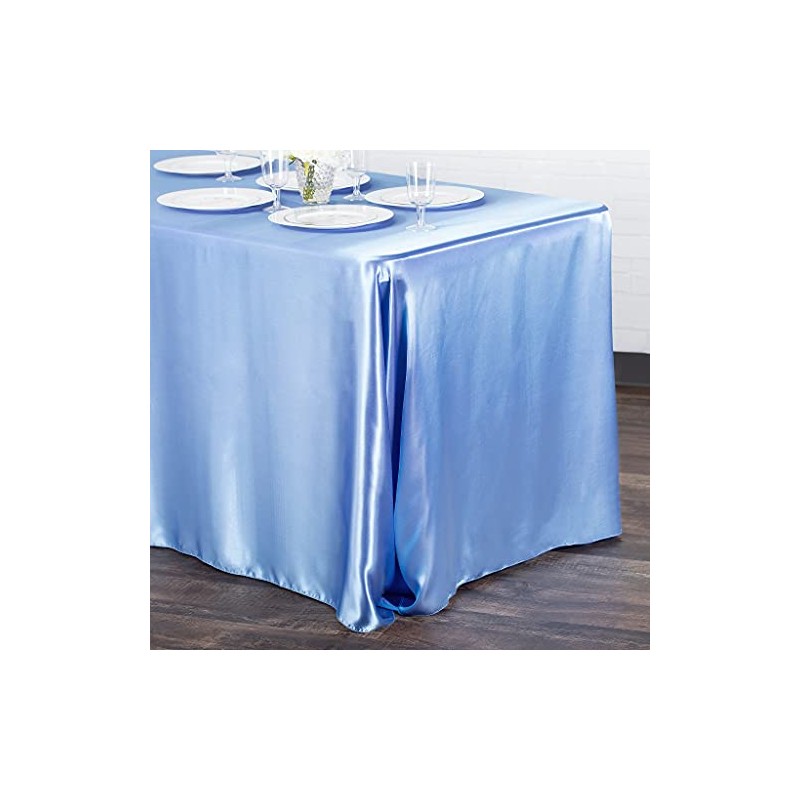 - PACKAGE INCLUDES: 1 Rectangular cornflower/serenity satin tablecloth - 229cm x 396cm