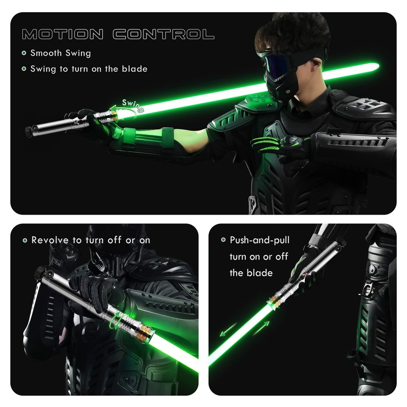 - 【Upgrade Version Light Saber 】Motion Control: lets you turn on or off the blade by pushing and pulling, twisting or swinging. The light saber sword has a real sound, smooth swing super sensitive. CVCBSER Brand dueling saber combines special combat sound effects and flash modes to bring a vivid and realistic combat experience.