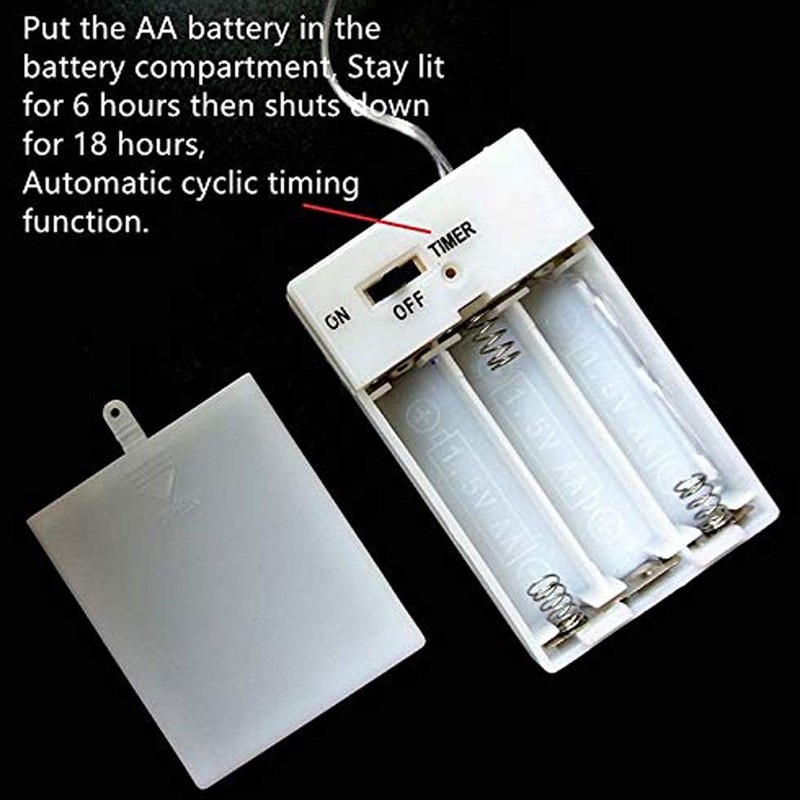 - Use 3 x AA batteries (Not included), three function switch: ON / OFF / TIMER (Always bright, close, stays lit for 6 hours then shuts off for 18 hours, Automatic cyclic timing function until battery energy disappears), timer can saving energy and battery can use longer time