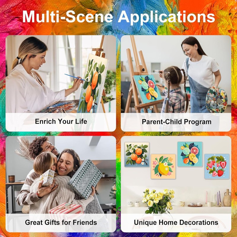 cviokrdu 4 Pack Framed Paint by Numbers Kit for Adults,Fruit Paint by Number for Beginners,DIY Easy Acrylic Oil Painting Kits on Canvas for Home Wall Decor (8x8inch)