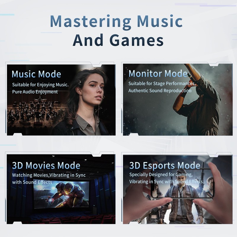 • Four Modes: CVJ Konoka 3D audio 3-unit hybrid 1DD + 1BA + 1 vibrating inner ear wired HIFI monitors headphone with a switch Kekai, Kekai adjustable four modes, whether listening to music, stage monitoring, watching TV, playing games, it can meet you, of course, it is most interesting to vibrate with the concert, can be switched on and off, according to their own needs to set