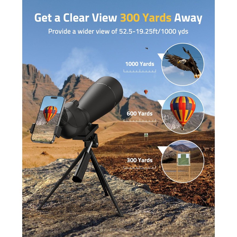 - Rugged Tripod & Phone Holder: This spotting scope for wildlife viewing comes with a solid tripod stand that can rotate 360 degrees, allowing you to adjust the viewing angle freely. It also includes a phone holder that is compatible with all types of smartphones and easy to install