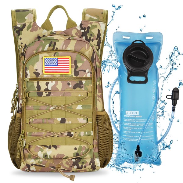 CVLIFE Tactical Hydration Backpack 3L, Water Backpacks for Men Women, Hiking Backpack with Water Bladder, Molle Hydration Pack Backpack, Water Bag Backpack for Hiking, Running, Cycling, Camping, CP