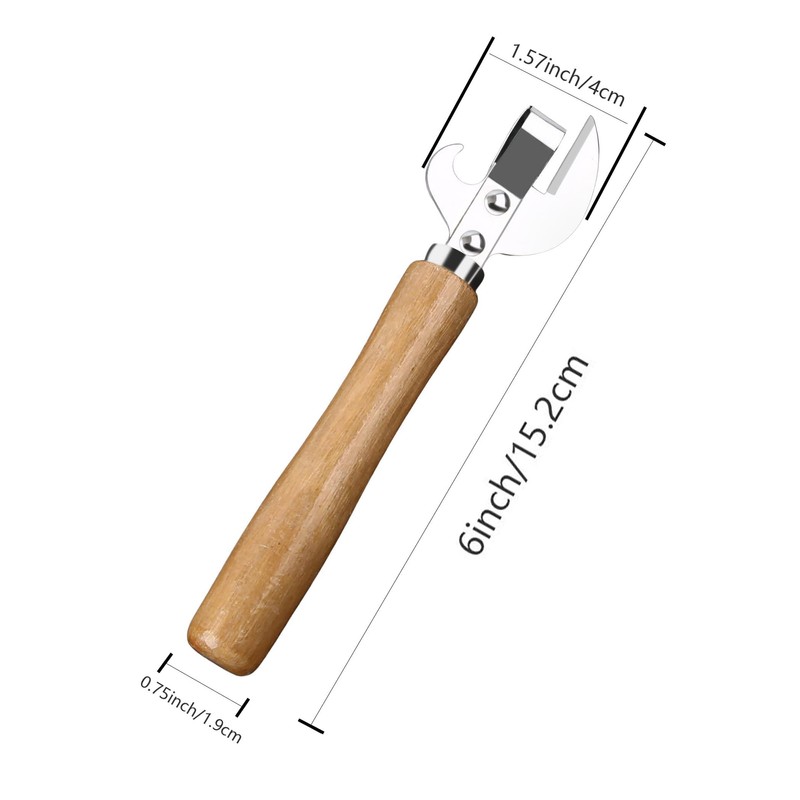 CVNRCLP 3 Pics Ergonomic Safe Manual Metal Can Opener - Side Cutting Tin Lid Remover with Steel Handle and Wood Grip - Professional Kitchen Tool for Effortless Openings