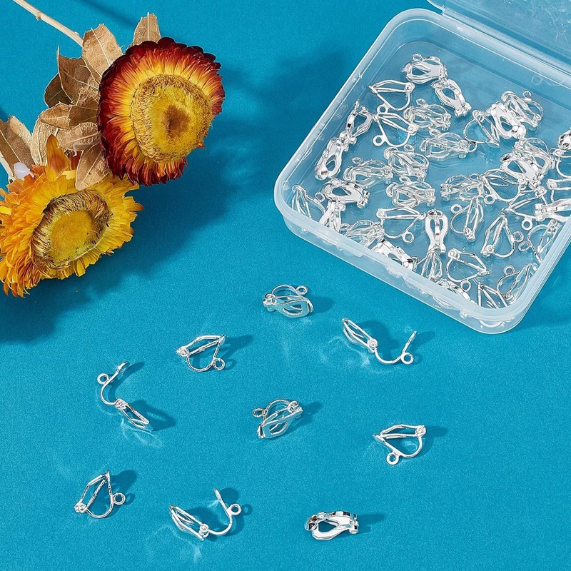 CVNRCLP 50 Pack Brass Clip-on Earring Hooks - Non-Pierced Silver Converter Cl...