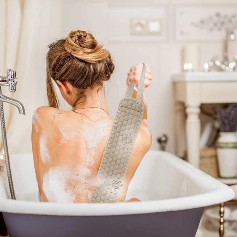 - ✅ 【Extended & Compact Design】 - The 38.5x3.7" body scrubber and smaller sponge pad offer versatility, perfect for deep cleaning your back, face, neck, shoulders, and feet.