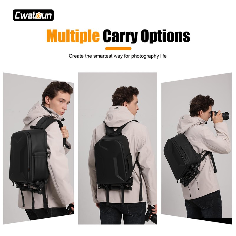 Cwatcun Camera Sling Bag, Waterproof Hardshell Small Camera Backpack with Tripod Holder & Laptop Compartment for DSLR SLR Mirrorless Camera, Multi-Use Camera Bag Compatible with Canon/Nikon/Sony/Fuji