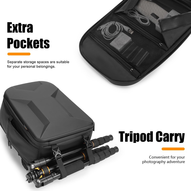 【MULTI-FUNCTIONAL】:Camera backpack with separate laptop compartment designed to accommodate a 13" laptop or 11" ipad and accessory pockets can store a note pad, sd cards, powerbank and other small items. Side quick access allows for reaching the camera within 3 seconds, capturing beautiful moments on the go. The bottom features adjustable tripod straps. Anti-theft pocket is designed on the back for your precious items. Camera sling bag with sides pockets for storing umbrellas or water bottles.