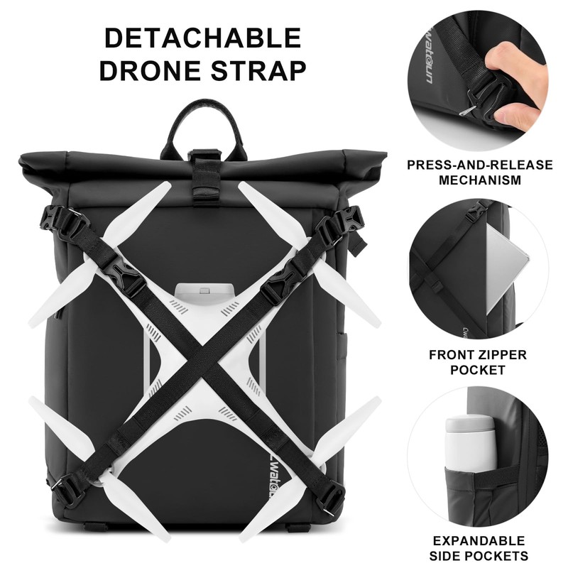 - ✅【Side qiuck access & Anti-Theft】①.Side quick access allows for reaching the camera within 3 seconds, capturing beautiful moments on the go. ②.The rear-opening design includes a built-in safety rope. The top features double buckles that are adjustable, serving as an anti-theft measure and providing additional protection.③.The bottom is equipped with adjustable tripod straps and two small clips, useful for securing excess straps.④.The front strap for attaching a drone, which is detachable.