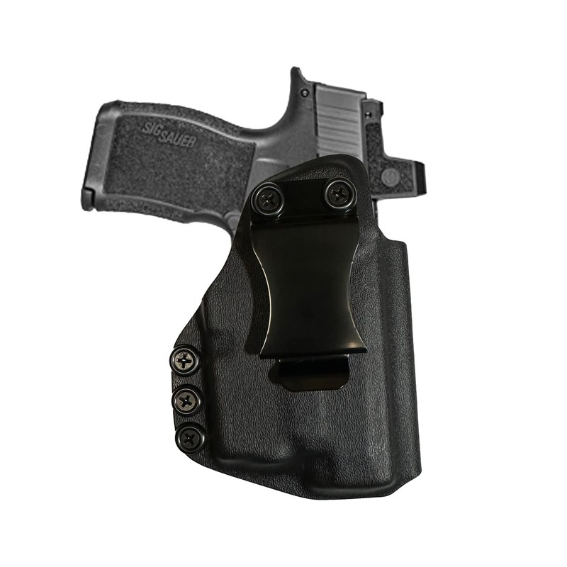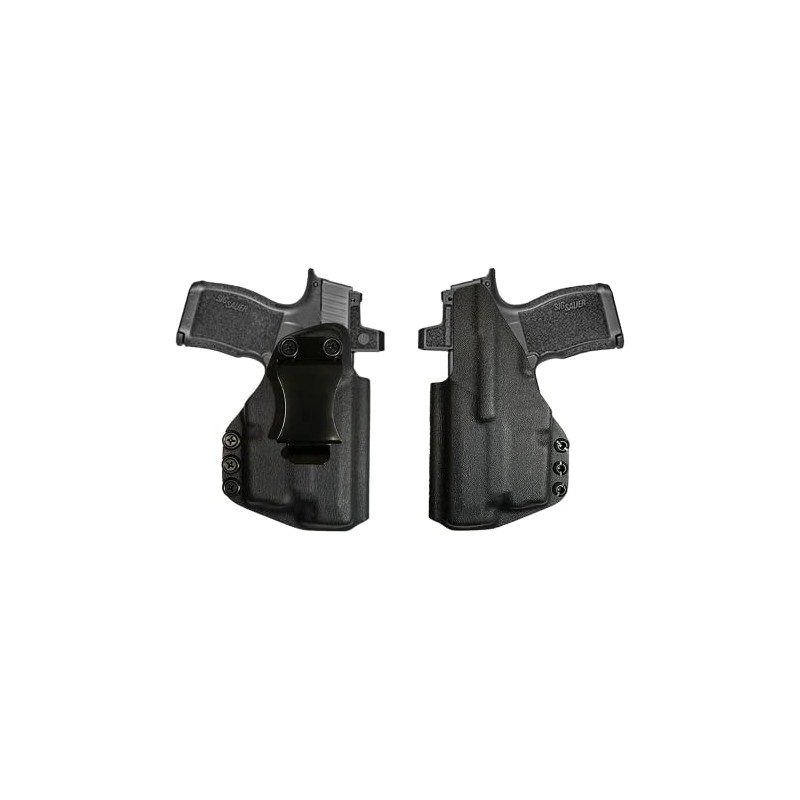 It’s more important than ever to protect yourself when you’re out in the world. And that begins and ends with maintaining your 2nd Amendment rights and ensuring proper firearm safety and accessibility at all times. We created this hand-crafted gun holsters compatible with SIG P365XL With TLR6 Light RMR Cut pistol to give you more control, comfort, and support no matter if you’re at the range or on the go. Designed with 0.8 Kydex material these tactical-grade carry holsters offer a slim profile, lightweight design, and precision firearm fit to ensure you stay a step ahead. Complete with options for RMR and red dot sights, as well as cuts for threaded barrels and compensators, they’re the ideal choice for veterans, military members, law enforcement personnel, security professionals, tactical teams, and proactive firearm enthusiasts. And with a secure 1.75”/ 1.5" belt clip of your choosing, adjustable angle cant, and adjustable ride height they provide a more comfortable fit all day long. More importantly, our concealment holsters provide a slim, discrete profile that still offers enhanced accessibility at a moment’s notice.
