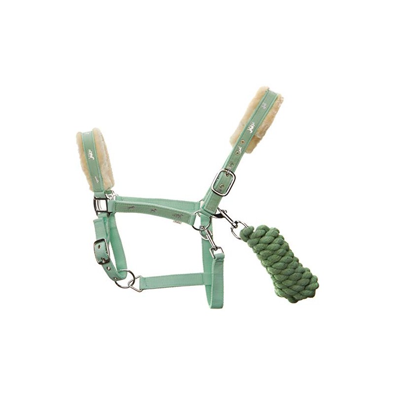 Cwell Equine NEW Horse print fur padded headcollars halter + matching lead MINT GREEN F/C/P (COB)