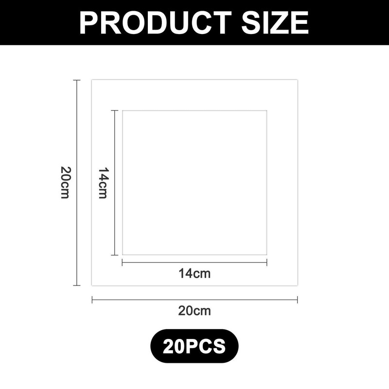 CWPFVQA Pack of 20 8 inch picture frame holders, white photo frame cardboard with square holes, square paper for photo mounting, suitable for classrooms, galleries and apartments