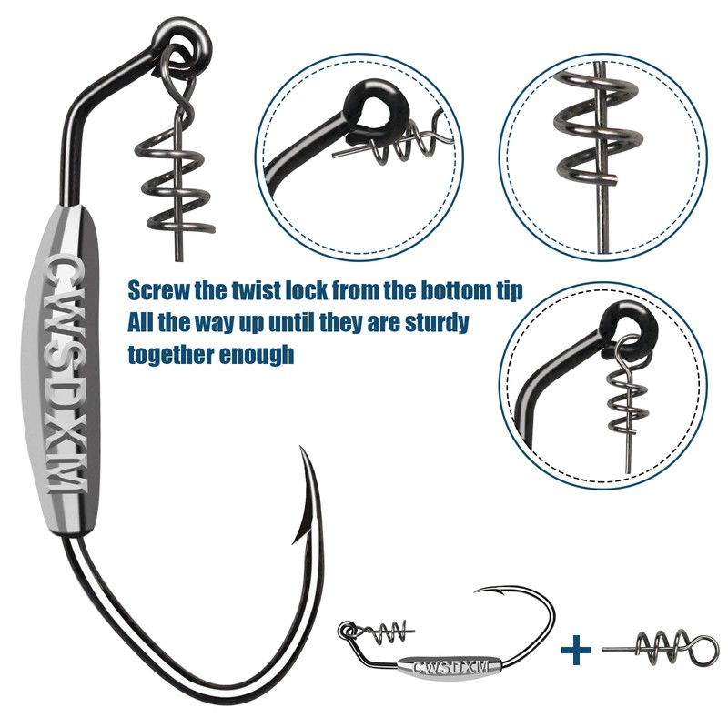 CWSDXM Twistlock Weighted Fishing Hooks, Swimbait Weighted Hooks Belly Offset Hooks for Soft Plastics Lures Worm Hooks for Bass Saltwater Freshwater