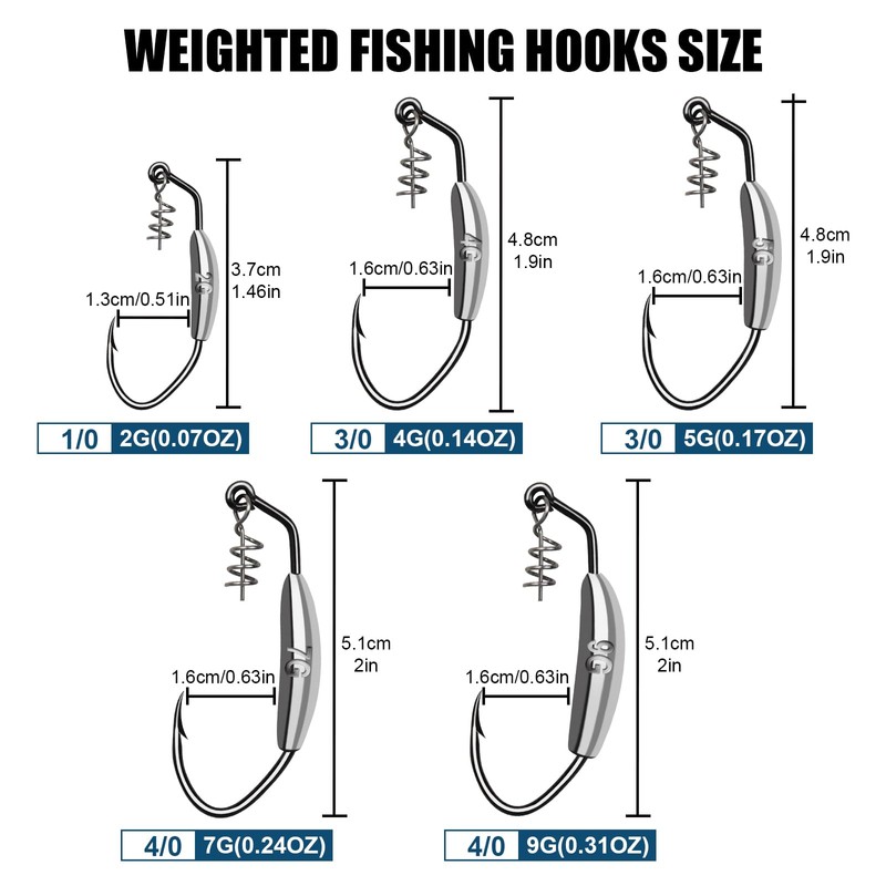 - ✅【Packeage】9G Weighted hooks 4/0 - 15 pcs per pack. This twist lock weighted fishing hooks are perfect for rigging soft baits!
