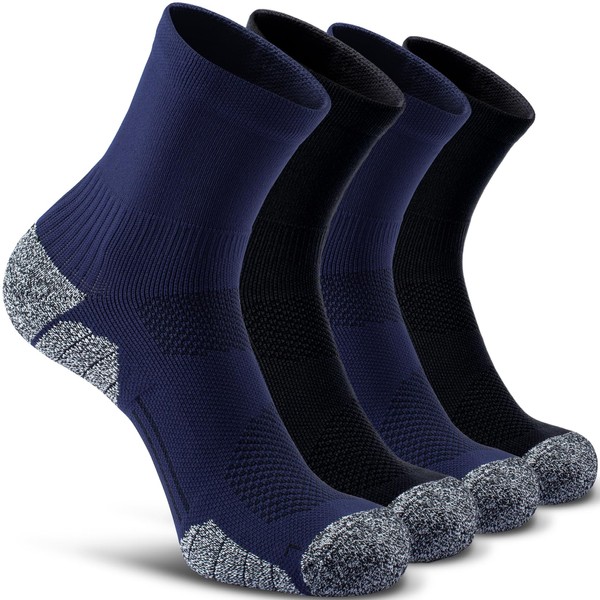 CWVLC Compression Athletic Unisex Quarter Socks Cushioned, 4-pairs (Black2,Navy Blue2), L