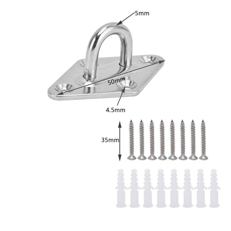 CXINCFBFUSH Hook Hardware Shade Mounting Hardware Strong Eye Plate Pad Eye 304 Stainless Steel (Silver, 4 Pad Eyes+Matching Screws)