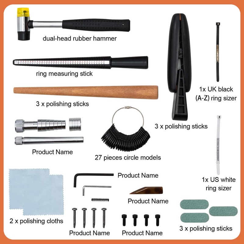 - CXRCY Ring Bending Kit:Our ring bending tool includes everything you need: ring sizer measuring tool, finger sizer tool, a polished agate, polishing rods,rubber jewelry hammer, ring mandrl and so on .