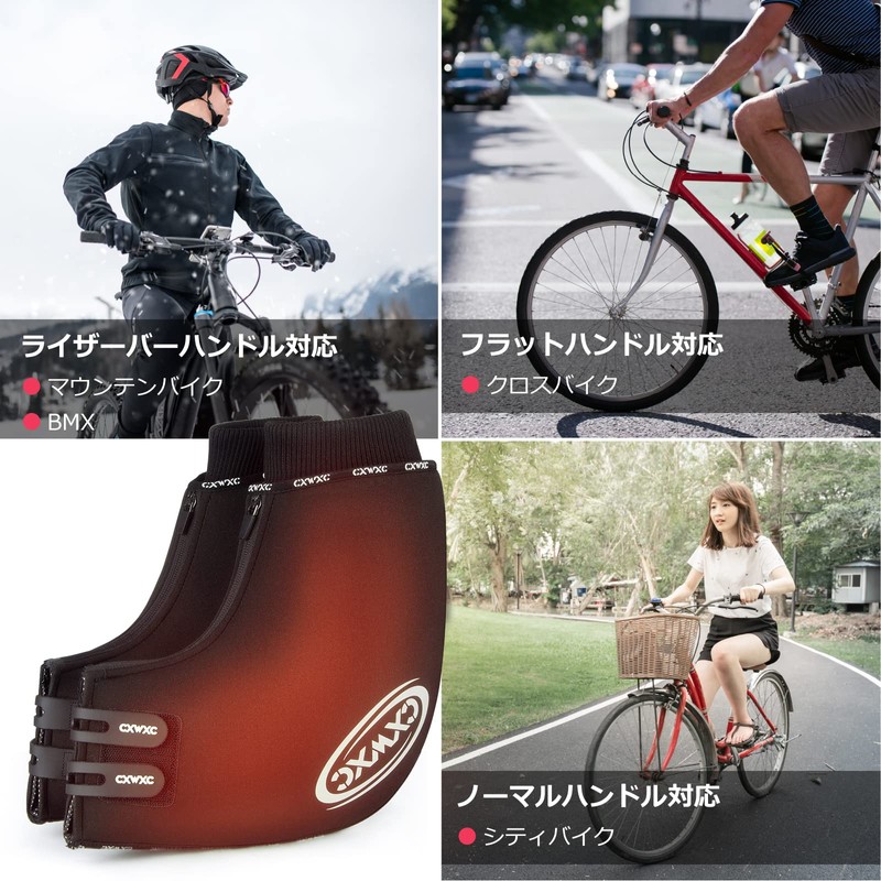 CXWXC Bicycle Steering Wheel Cover, Electric Heating, Windproof, Retroreflective, Waterproof, Compatible with Flat Handles, Autumn, Winter, Cross Bikes, Machari, Etc., Black (CX-012M/Electric Heat)