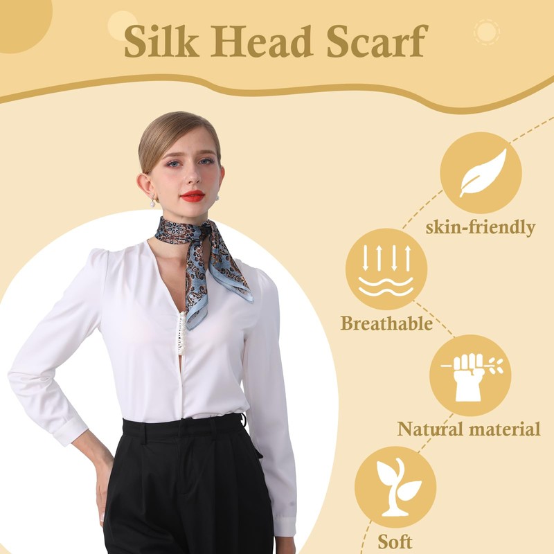 - (Material and size) 21 inches x 21 inches /53 cm x 53 cm. This silk scarf is made of mulberry silk fabric, soft and skin-friendly, good breathability, warm in winter and cool in summer.