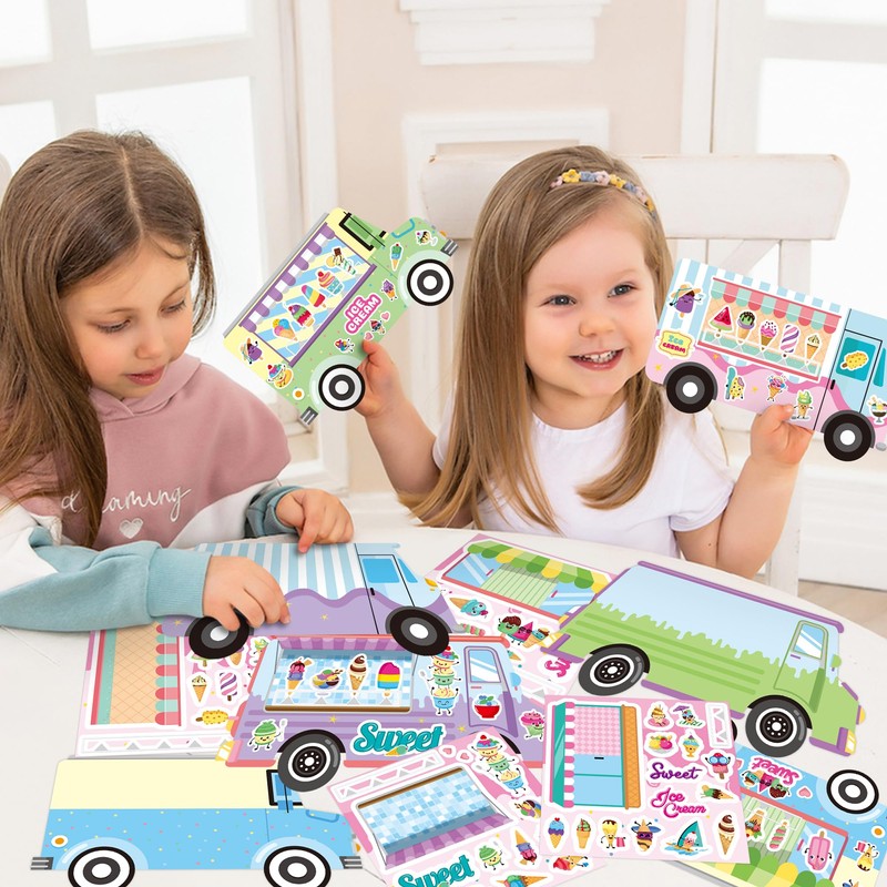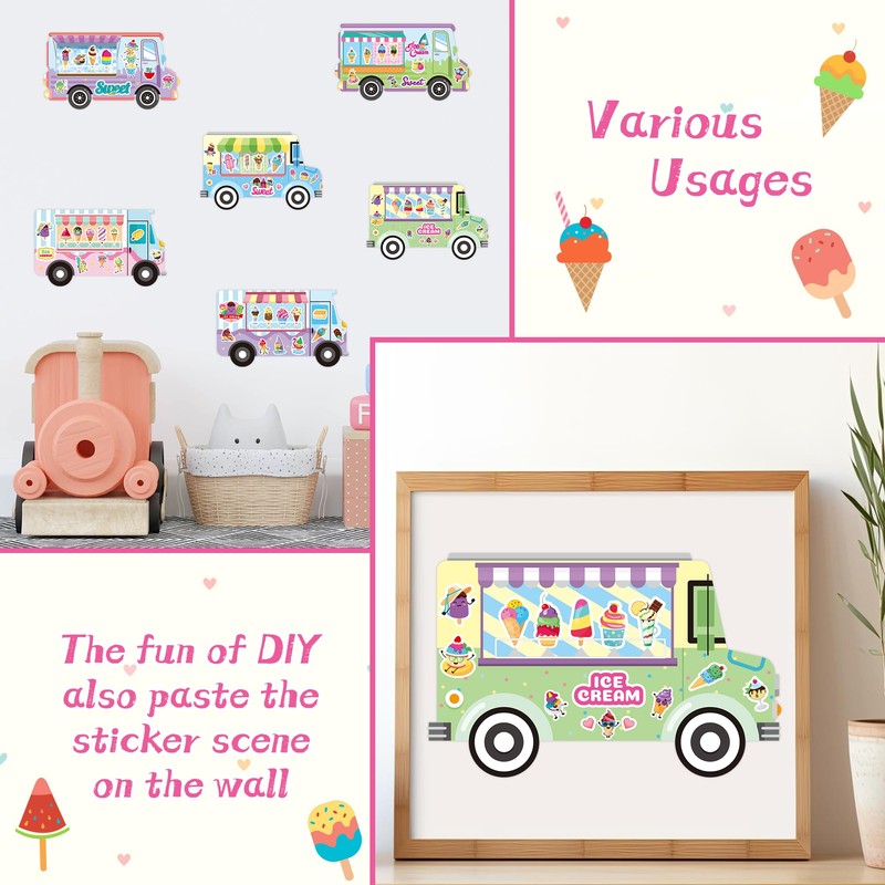 CY2SIDE Ice Cream Stickers Scene - 24set Make Your Own Ice Cream Cart Scene Art Craft DIY Dessert Truck Shop Stickers with Mix Match Sweets Decals for Kid Summer Party Games for Classroom Activities