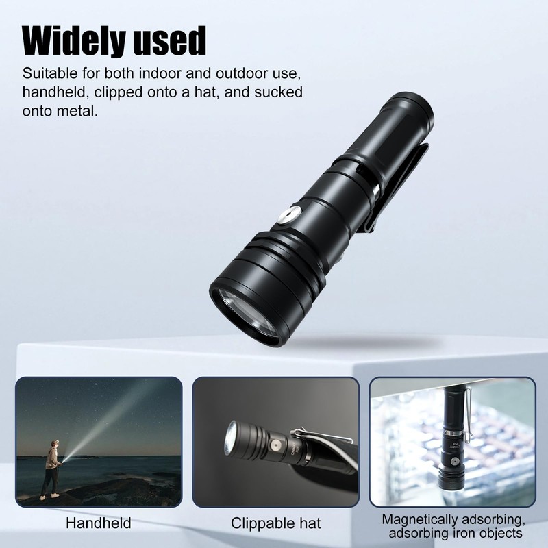 - Flashlights for Emergencies - One button switch, super compact size, very suitable for daily carrying, ready to respond to various emergency situations such as sudden power outages or going out. The magnetic tail design can be sucked onto the car or other metal surfaces, helping to release both hands.