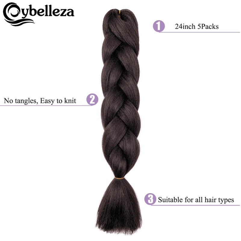Cybelleza Braids Extensions, Synthetic Hair for Braiding, 60 cm, Ombre, Jumbo Braids, 5 Pieces, Hair Braiding Extensions, Crochet Twist Synthetic Braids, 500 g, Darkest Brown